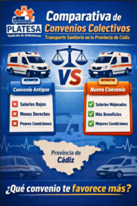 La comparativa se realiza entre la modificación del convenio para el periodo 2021-2025 y el nuevo convenio colectivo para el periodo 2026-2030, ambos referidos al sector de transporte sanitario en…