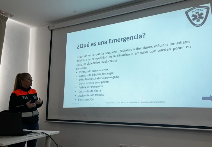 El pasado 6 de febrero de 2025, nuestra compañera Emma llevó a cabo una charla dentro del marco del proyecto TES VISIBLE 2025 en el Ayuntamiento de Alhendín, con el objetivo de dar mayor visibilidad a la labor de los Técnicos en Emergencias Sanitarias (TES) y sensibilizar a la comunidad sobre la importancia de este colectivo en la atención prehospitalaria.